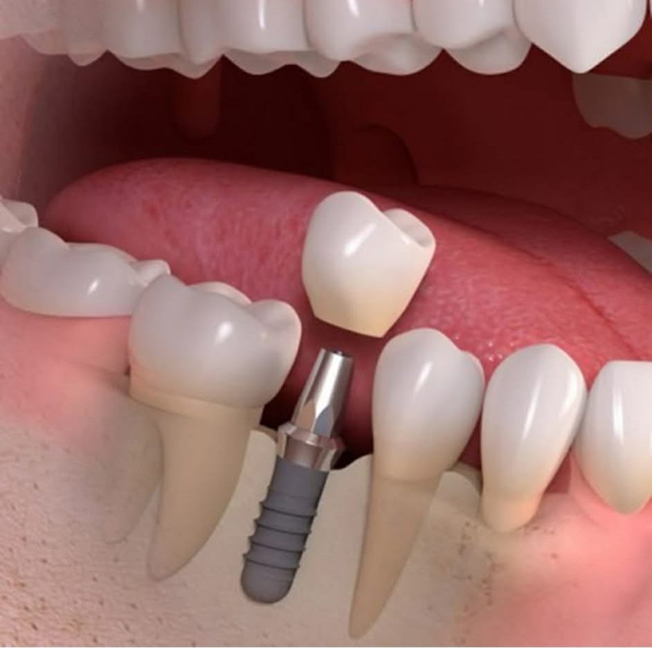 Co jeśli utracimy chociaż jeden ząb? Lub nie mamy większej ilości zębów? Nie ma powodów do zmartwień. Są sposoby na poprawienie komfortu żucia i przywrócenie prawidłowej funkcji oraz estetyki uśmiechu bez konieczności szlifowania zębów pobocznych. Implanty dentystyczne dają możliwość najmniej inwazyjnej i najbardziej komfortowej odbudowy utraconych zębów lub poprawy utrzymania istniejących już protez. Implant to tytanowa śruba, która zrasta się z kością po zabiegu wszczepienia, który jest minimalnie inwazyjny. Po okresie integracji z kością, możemy na takim implancie odbudować brakujący ząb koroną protetyczną lub w przypadku rozległych braków zębowych możemy odtworzyć większą ilość brakujących zębów.