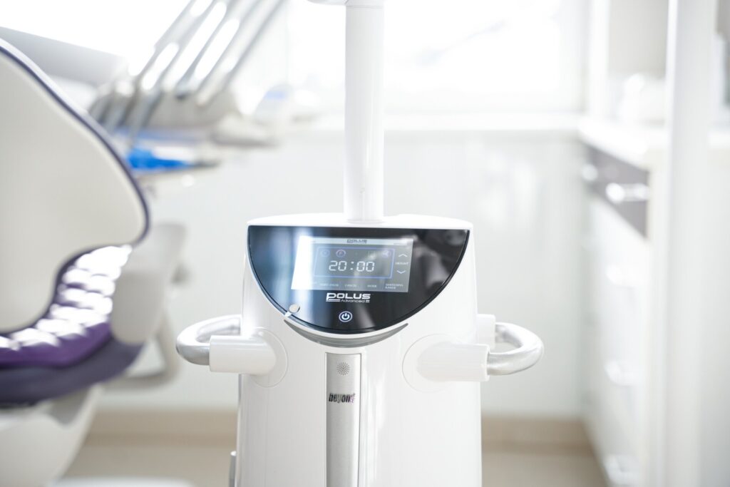 Niebieskie światło Beyond Polus niszczy 99% bakterii w jamie ustnej i zmniejsza stany zapalne przyzębia.