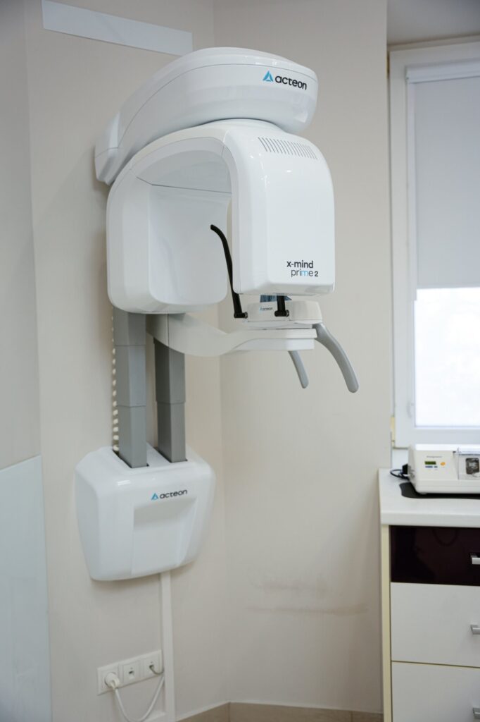 Trójwymiarowy obraz struktur jamy ustnej wykonywany tomografem ACTEON X-MIND. Najdokładniejsza metoda diagnostyki – umożliwia precyzyjne planowanie implantów, ocenę trudnych kanałów korzeniowych, diagnostykę zmian w kościach i zatokach szczękowych. Badanie trwa kilkanaście sekund i jest całkowicie bezbolesne.